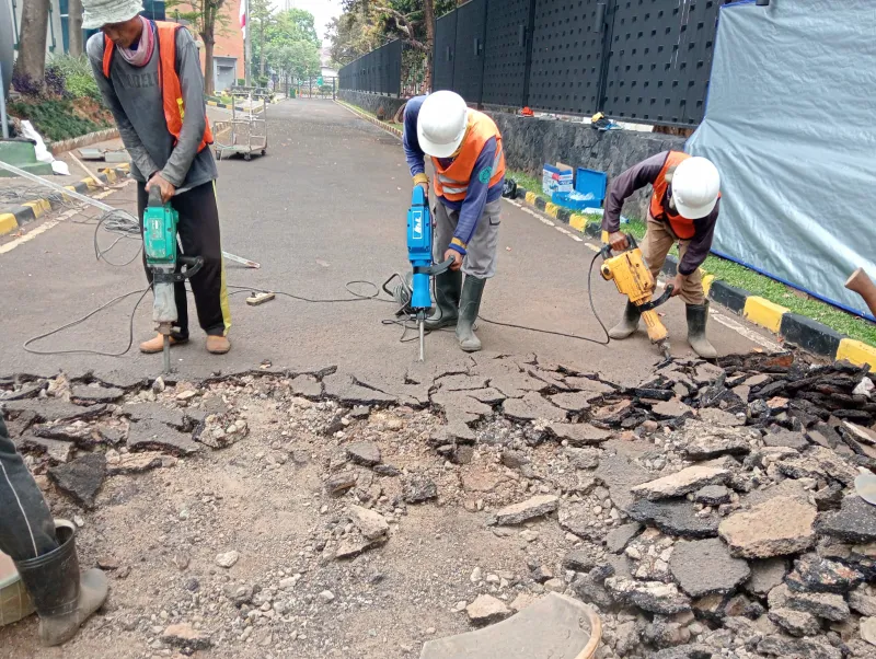 Perbaikan lubang/retak jalan. Hasil seperti baru, biaya efisien.