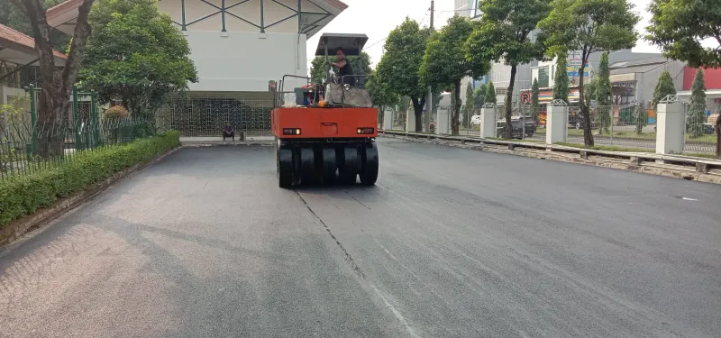 Aspal jalan berkualitas, tahan lama, dan rata. Cocok untuk jalan umum/perkantoran.